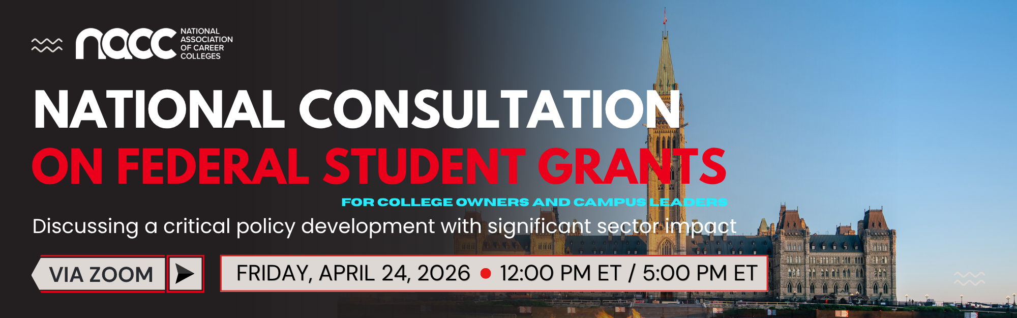 Join NACC for a national consultation on federal student grants. This session will bring together career college leaders for an important discussion on current developments, sector impact, and next steps. If you are an owner, campus director, or campus leader, you should attend this session.
